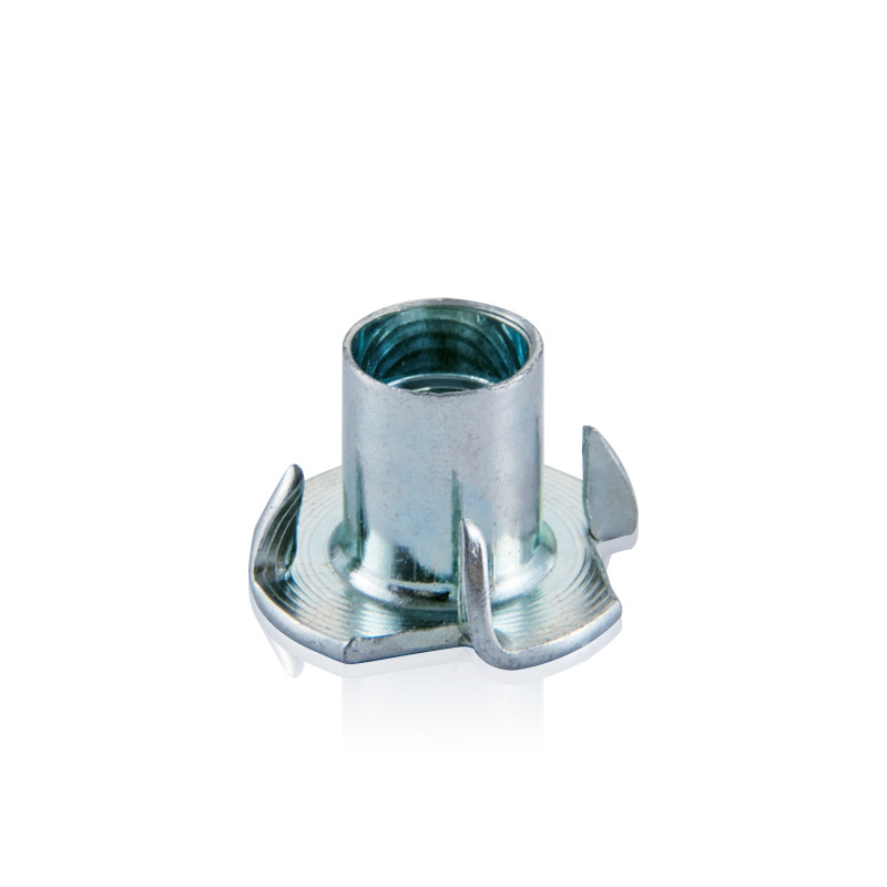 Four claw nuts, also known as pronged tee nuts or simply claw nuts, are a type of fastener typically used in woodworking and some light metalworking applications. They are designed to provide a strong, internally threaded anchor within materials that are otherwise difficult to securely fasten with standard nuts and bolts, particularly in softer materials like wood, particle board, and plastic.